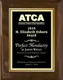 - ↑ "American Theatre Critics Association – Osborn New Play Award – The M. Elizabeth Osborn Award". Americantheatrecritics.org. February 24, 2011. Retrieved March 17, 2016.