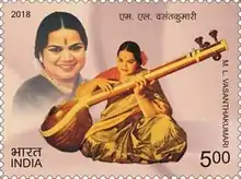 Madras Lalithangi Vasanthakumari (popularly referred to as MLV) (3 July 1928 – 31 October 1990) was a Carnatic musician[1][2] and playback singer for film songs in many Indian languages. MLV and her contemporaries D. K. Pattammal and M. S. Subbulakshmi are popularly referred to as the female trinity of Carnatic Music.[3] A prime disciple of G. N. Balasubramaniam, she was the youngest among the established musicians of that era, and was the youngest female to receive the Sangita Kalanidhi award.[4] In 1967, she was honored with the Padma Bhushan, the third highest civilian award by the government of India. Her daughter, the late K.Srividya, was an actress in Tamil and Malayalam languages.