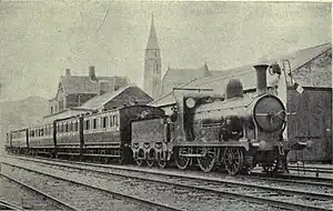 ![]() MGWR Class K 2-4-0 on an express at Clifden in 1914. | |||||||||||||||||||||