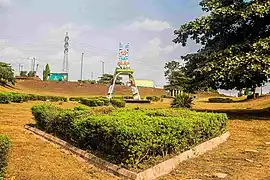 The MKO Abiola Park is a public park located at the Ikododu Road - Lagos/Ibadan Expressway Interchange in Ojota, Lagos. The green space was named after the Late Nigerian Politician and Philanthropist MKO Abiola.[1] The park has a wide green landscape, some monuments and seats for relaxation. In June 2018, a 46 feet statue of MKO Abiola was situated in the park to honor his cause.[2]