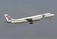 The airline was founded by Michael C. Kruger as MK Air Cargo d'Or in 1990[1] (MK stands for its founder's initials). Headquartered and registered in Ghana, a network of cargo flights with hubs at Kotoka International Airport and Gatwick Airport was set up, which was served with only one aircraft, a Douglas DC-8. In 1993, the MK Airlines branding was adopted.[1]
