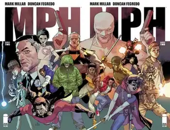 MPH (Miles Per Hour) is a British heist-action-thriller comic book limited series written by Mark Millar and illustrated by Duncan Fegredo. Published by Image Comics, the series is set in the Millarworld,[2][3] with its events being first referenced in 2014's Kick-Ass: The Dave Lizewski Years – Book Four.[4] Described as "The Fast and the Furious without cars",[5][6] the series follows a group of early-20s criminals who on discovering a drug that gives them super-speed, use it to go on a series of grand heists, while pursued by a government agency with a mysterious speedster of their own. The series, originally published between May 21, 2014 and February 18, 2015, was collected as a graphic novel on April 22, 2015.[7] Characters from the series would later return in the miniseries Big Game in 2023. Receiving a generally positive critical reception, both a comic book sequel and feature film adaptation of the series has been in development hell since its initial publication.