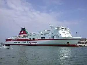 The MS Cruise Smeralda is a RO/PAX ferry operated and owned by Grimaldi Lines. The ship was built as Ikarus in Fosen Mek Verksteder A/S, Norway for Minoan Lines in 1997, and later renamed Ikarus Palace. She has a sister ship Jean Nicoli now with Corsica Linea.