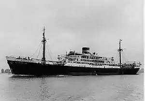 Klipfontein, which had been operating for the Allied war effort before the U.S. entry, was one of the Dutch ships taken over by the War Shipping Administration (WSA) 23 February 1942, allocated to U.S. Army with the nature of the operating agreement with the Netherlands Ministry of Shipping changed 23 May 1942 to a time charter extending until 1 February 1946. The operating agreement was with the Army Transportation Corps with the ship sometimes seen as the USAT Klipfontein though it was never under Army administration. The ship was one of the WSA troopships operated by agents, in this case for most of the war by the Dutch operating company Stoomvarrt Mataschappiy Nederland.[4][5][6][7]