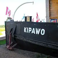 The vessel was purchased in 1981 by the Kipawo Heritage Society of Wolfville and was returned to Minas Basin in 1982.[1] Not long after returning to the Minas Basin, Kipawo was purchased by the Town of Parrsboro, Nova Scotia for a museum and was deliberately beached in a tidal inlet immediately south of the town while funding arrangements were secured. By 1986 the museum concept was shelved in favour of housing a local theatre, the Ship's Company Theatre, which began to use the Kipawo as their performance centre. In 2004, the theatre company expanded its facilities with an expanded performance hall which architecturally incorporates the Kipawo into the outdoor lobby.