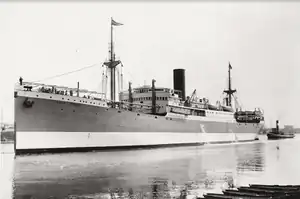 MV Kota Pinang was a cargo liner ordered by Rotterdamsche Lloyd and built by Nederlandsche Scheepsbouw Maatschappij in Amsterdam in 1930. She was launched on 23 November 1930.[2] In May 1940, the ship was requisitioned by the Kriegsmarine, renamed to the MV Clara and converted into a Reconnaissance scout [3] for naval operations by the German battleship Bismarck and cruiser Prinz Eugen in the Atlantic.[4] In June 1941, the ship was converted again to operate as a U-boat supply vessel.[4] On the 3 October 1941, she was sunk by the British cruiser Kenya.