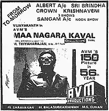 Maanagara Kaaval (transl. City Police) is a 1991 Indian Tamil-language political action-thriller film directed by M. Thiyagarajan. The film stars Vijayakanth and Suma. It is the 150th film of AVM Productions. The film was released on 28 June 1991.[2]