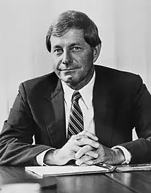 In 1980, Mattingly scored a historic upset, defeating longtime Democratic Senator Herman Talmadge, outpolling Ronald Reagan who lost the state in the presidential election to favorite son Jimmy Carter.[3] Mattingly served in the Senate from January 1981 until January 1987, with membership on the United States Senate Committee on Appropriations, chairing first the United States Senate Appropriations Subcommittee on Legislative Branch and later the United States Senate Appropriations Subcommittee on Military Construction and Veterans Affairs. Mattingly also served at various times on the Senate Banking Committee, the Governmental Affairs Committee, the Joint Economic Committee and the Ethics Committee. He is perhaps best remembered as a proponent of the line-item veto, a position that earned him recognition by President Ronald Reagan during his 1985 State of the Union Address.