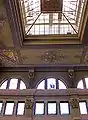 The Grain Exchange was located in a large three-story room in the building. The room was designed in a Simple Italian architectural style, with soaring ceilings, hand painted frescoes, gold leaf and over 10,000 sq. feet of space. The grain exchange is closely linked with the early commercial history of Milwaukee, when for a brief time, the city was the world's largest primary wheat market for trading, exporting and inspecting grain. Milwaukee's lake port was near vast acres of wheat in the state, so the Milwaukee grain exchange conveniently located there and invented and utilized the very first octagonal trading pit. The grain exchange operated from 1880 to 1935.[6]