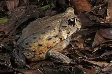 Macrogenioglottus is a genus of frogs in the family Odontophrynidae.[2] It is monotypic, being represented by the single species, the Bahia forest frog (Macrogenioglottus alipioi).[3] It is endemic to the Atlantic Forest of southeastern Brazil.[2] Its natural habitats are primary and old secondary forests, but it can also live in agroforestry systems such as cacao plantations. Habitat loss is a potential threat to this species.[1]