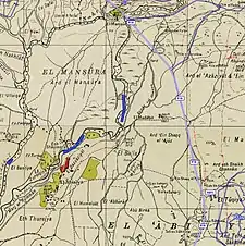 During the 1948 war, the evacuation occurred before the Zionist assault on Safad on 10 to 11 May.[2] According to Morris, based on Haganah-sources, the villagers feared reprisals or feared being caught in a cross-fire after local Jewish communities had been attacked. Therefore, the villagers of Madahil (together with those of Khiyam al-Walid, Al-Hamra', Ghuraba, and (partially) Al-Muftakhira) fled.[4] However the American historian Rosemarie Esber gives as depopulation cause "Attack or atrocity in neighboring village or community" and "Fear of impending attack, or fall of neighboring town or village."[5] The Israeli settlement of Kefar Szold, founded in 1942, is located 1.5 km southeast of the village site, but not on village land.[2]