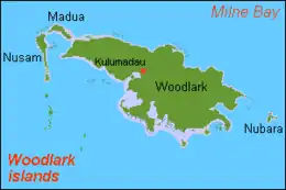 Map of Woodlark islands, Papua New Guinea showing Madau island