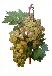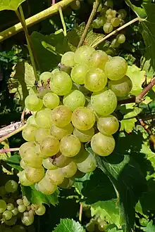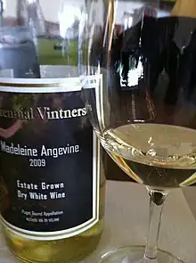 Madeleine Angevine is a white wine grape from the Loire Valley in France that is also popular in Germany, Kyrgyzstan[1] and Washington state.[2] The early-ripening grape is a cross between Madeleine Royale and Malingre Précoce grapes that grows well in cooler climates. Madeleine Angevine makes an attractive fruity wine with a flowery nose, similar to an Alsatian Pinot blanc. It is crisp, acid and dry and pairs particularly well with seafoods such as crab and oyster.[3]