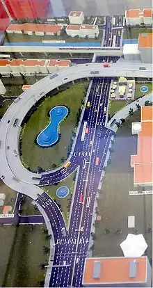Four flyovers were planned to be completed by 2009, but these projects have remained unbuilt.[1][2][3][4] A Trumpet interchange is planned for the junction. The interchange starts at the IT Expressway in front of Kasturba Nagar station and goes parallel to MRTS line and then turn about while splitting into two joining the Sardar Patel Road.[5] As of December 2007, the corporation and government were yet to finalise the design and alignment of the flyover.[6]
