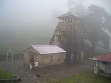 Madhyamaheshwar (Sanskrit: मध्यमहेश्वर) or Madmaheshwar is a Hindu temple dedicated to Shiva, located in Gaundar,[1] a village in the Garhwal Himalayas of Uttarakhand, India. Situated at an elevation of 3,497 m (11,473.1 ft), it is one of the Panch Kedar pilgrimage circuits, comprising five Shiva temples in the Garhwal region. The other temples in the circuit include: Kedarnath, Tungnath and Rudranath which are culturally visited before Madhyamaheshwar and, Kalpeshwar generally visited after Madhyamaheshwar. The middle (madhya) or belly part or navel (nabhi) of Shiva is worshipped here. The temple is believed to have been built by the Pandavas, the central figures of the Hindu epic Mahabharata.[2]