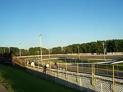 The track was a quarter mile long before it was torn up and replaced with a half mile paved oval in 1969.[5] The first winner on the half mile was Ramo Stott,[5] and the surface's first champion was Jimmy Back.[6] The track seats over 10,000 spectators.[1] There is a quarter mile track inside the half mile. A track veteran described racing the track by saying that you drive into the corners way over your head before you stand on the brakes. The more that you frighten yourself in the corners, the faster that the laps ended up.[7]