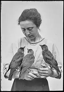 Since Oskar Heinroth was the founder and in-charge of the new Berliner Aquarium, his wife organized the documentation of their bird raising program. At the beginning of the 20th century she published her notes on aviculture in the worldwide oldest bird journal Gefiederte Wel.[3]