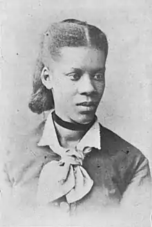 Maggie Porter was one of three daughters born in Lebanon, Tennessee to a slave family belonging to Henry Frazier.[1] At the start of the Civil War, Frazier moved to Nashville, taking Maggie's family with him, and when Union soldiers took and occupied the city, Frazier freed Maggie and her family after the publication of the Emancipation Proclamation. After she attended the Fisk Free Colored School, Maggie worked as a teacher in various country schools (one of which was burned down by the KKK).[1] In the winter of 1870, Maggie was asked to sing the title role in Handel's "Cantata of Esther" by George White, a musical and choral director at Fisk.[2] Her success in the role led to her being offered a position with the new Fisk Jubilee Singers.