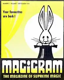 Magigram was a magic magazine published by Supreme Magic in Bideford, England[1] from September 1966 – February 1995.[2] It started as a bimonthly magazine but became monthly in September 1971.[1] It was edited for its whole run by Ken de Courcy. A complete file contains 306 issues and over 20,000 pages.[2]