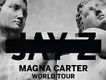 The Magna Carter World Tour was a concert tour by American rapper Jay-Z. It was promoted by his twelfth studio album Magna Carta Holy Grail (2013). Following his headlining performance at the 2013 Wireless Festival, Jay Z and promoters Live Nation announced a European and North American headlining tour. The venture was Jay Z's first solo headlining tour in almost four years, following 2009's Fall Tour.[2] According to Pollstar, The tour earned total $48.9m from 52 shows.