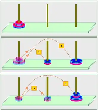 - ↑ "Tower of Hanoi, the Hard Way". This is another variation of the ToH which relates to base 3.