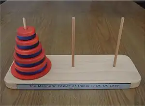 - ↑ Levy, Uri (2010). "The Magnetic Tower of Hanoi". Journal of Recreational Mathematics. 35 (3): 173.