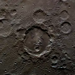 - ↑ Chapman, C. R., Baker, D. M. H., Barnouin, O. S., Fassett, C. I., Marchie, S., Merline, W. J., Ostrach, L. R., Prockter, L. M., and Strom, R. G., 2018. Impact Cratering of Mercury. In Mercury: The View After MESSENGER edited by Sean C. Solomon, Larry R. Nittler, and Brian J. Anderson. Cambridge Planetary Science. Chapter 9.