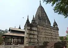 The Mahabodhi Temple (Burmese: မဟာဗောဓိဘုရား [məhà bɔ́dḭ tɕáʊɰ̃]) is a Buddhist temple located in Bagan, Myanmar. It was built during the reign of King Htilominlo (r. 1211–1235), and is modelled after the Mahabodhi Temple in Bihar, India.[1]: 183 The temple is built in an architectural style typical during the Gupta period, and contains a large pyramidal tower with many niches containing over 450 images of Buddha. The temple survived the 1975 Bagan earthquake, and was repaired in following years.
