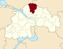 Mahdalynivka Raion (Ukrainian: Магдалинівський район) was a raion (district) of Dnipropetrovsk Oblast, southeastern-central Ukraine. Its administrative centre was located at the urban-type settlement of Mahdalynivka. The raion was abolished on 18 July 2020 as part of the administrative reform of Ukraine, which reduced the number of raions of Dnipropetrovsk Oblast to seven. The area of Mahdalynivka Raion was merged into Novomoskovsk Raion.[1][2] The last estimate of the raion population was 32,844 (2020 est.)[3].