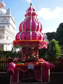 Maheswarnath Mandir (locally known as "Grand Shivala Triolet") is a Hindu temple located in the town of Triolet, Mauritius. The presiding deity of the temple is Lord Shiva (one of his epithets is Maheshwarnath, meaning the great Lord). The temple was founded in 1888 by Pandit Shri Sajeebunlall Ramsoondur, who came from Calcutta. The temple is famous for its association with the first pilgrimage to Ganga Talao, the sacred lake found in the center of Mauritius. The temple is the biggest and one of the oldest Hindu temples on the island along with the Kovil at Bon Espoir Piton (1830), Sinatambou Kovil at Terre Rouge (1850), Murugan Kovil at Clemencia (1856), the Shivala at Gokoolah (1867), Rameshwarnath Shivala at Terre Rouge (1867) and Jharnath Shivala at l'Aventure (1881). There also old Mandaps and Kalimayes dedicated to Durga and Kali, like the one at Antoinette Phooliyar (around 1840s) and a Durga Mandap at Cinema Casse in Triolet itself (1882).