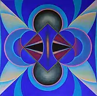 In Munich, in the 1960s, he was influenced by Constructivism, and with his Indian background, by Tantra art. Out of these origins arose his "Centrovision" series, which – already in 1990 – consisted of more than 3000 works. [1]