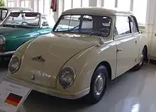 The Maico Mobil, said to resemble a "two-wheeled car", was a highly enclosed two-wheel motorcycle which sold only in small numbers. It was designed to provide motorcycle handling combined with scooter convenience, a large trunk,[9] and weather protection. It was nicknamed the "dustbin".[10] The Mobil was produced from June 1950 through 1958 with aluminum bodywork and a tubular frame.[11][12]