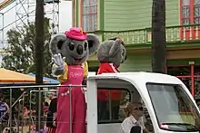 At various times throughout the day guests Dreamworld's mascots appear on Main Street. Dreamworld's original mascot, Kenny Koala, appears alongside 1983 addition Belinda Brown for meet and greets. Guests can also have their photo taken with The Wiz or Goldie the Clown.[13]