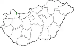 The Main road 14 (Hungarian: 14-es főút) is a south–north direction Secondary class main road in the Kisalföld, that connects the Main road 1 change to the border of Slovakia. The road is 12.5 kilometres (7.8 mi) long.[1]