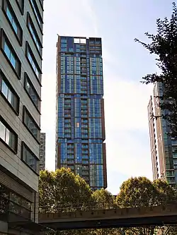 Maine Tower is a 41-storey residential building located between Lighterman's Road and Dockyard Lane on the Isle of Dogs forming part of the Harbour Central development at Canary Wharf, London.