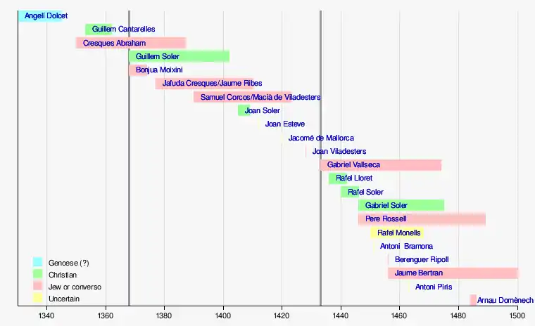 (Timeline derived from ca:Llista cronològica de cartògrafs portolans mallorquins)