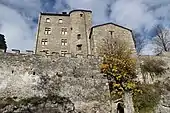 The castle is composed of two main buildings: the Majorie and the Vidomnat. The Majorie is a high tower dominating the site and protected by imposing terraced walls. The Vidomnat, located below and westward of the Majorie tower, is made up of two three-storey square towers, which were probably conjoined after their construction.[2][3][4]