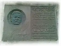 ![]() The Gorky plaque on the wall of the house in Tbilisi where the story was written | |