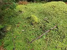 The Left-hand Branch runs from the Main Branch Junction northwards and has several side branches to the east and west. The second side branch to the west is particularly interesting because of its preserved rails, bearers and sleepers, and even a points change. It runs towards a skid site and log hauler, which is embossed with the name S. Luke and Co Ltd, Wellington, one of the 13 principal log hauler manufacturers in New Zealand.[4] The log hauler has a significant fatigue crack in the side, which was crudely repaired on site,[5] but subsequently taken out of service. The Left-hand Branch then splits into two branches at the former boundary between Lots 10 and 11. The Left Left-hand Branch has more in situ sleepers, rails and bearers than the Left-hand Branch, and has two skid sites, a causeway and a bridge crossing. The Right Left-hand Branch runs from the junction towards east. It crossed two bridges and consisted mainly of intermittent sections of corduroy roads, but there is a small length of wooden tramway at the very end of the branch, which lead to a skid site and associated draglines. There is also a junction partway along the Right Left-hand Branch with a branch in northerly direction.[4]