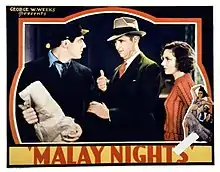 Malay Nights is a 1932 American drama film directed by E. Mason Hopper and starring Johnny Mack Brown, Dorothy Burgess and Raymond Hatton. It was produced on Poverty Row as a second feature for release by Mayfair Pictures.[1] It is also known by the alternative title Shadows of Singapore.