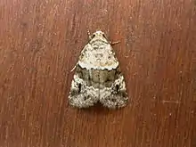 In female, body more suffused with fuscous. Forewings with outer pinkish area in tone. There are two prominent white lunules present on postmedial line above inner margin. Hindwings dark fuscous, with ochreous outer margin and cilia.[5]