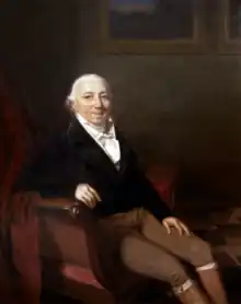 - Adolphe-Jacques "James", 2nd Baron Mallet de Chalmassy (1787–1868). He was awarded a knighthood for his outstanding conduct in the defense of Paris at Barrière de Clichy in 1814.[67] Under his leadership, the Mallet Bank acquired Passage Choiseul for the construction of the Opéra-Comique's theatre, Salle Ventadour.[68][69] Adolphe-Jacques assumed his late father's seat on the Council of Regents,[64] and served as valet de chambre for kings Louis XVIII and Charles X.[70]