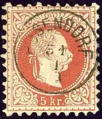 The name Pösendorf was used on this Austro-Hungarian 1874 cancellation