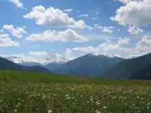 The Mals Heath[1][2] (German: Malser Haide) is located in South Tyrol, Italy; it is one of the largest ancient landslides and one of the most remarkable landscape features in the Alps. It is located in the Upper Vinschgau where a broad pass (the Reschen Pass) crosses the main Alpine divide into the Inn Valley (Austria). It extends from Glurns via Laatsch, Schleis, and Burgeis up to Plawenn. On the southern part is the village of Mals. The height difference of the heath varies from 900 m (Glurns) to 1,760 m (Plawenner Alm). The landslide emerges from the small side valley of Plawenntal, and descends for 11 km to the head of Vinschgau proper. The volume of the debris fan is estimated at 1,650 million cubic metres. It had always been assumed to be an alluvial fan, built up by numerous floods and debris small flows. New research demonstrates that a lost mountain could have existed above the head of Plawenntal, with a summit at about 3,100m - the present highest peak on the perimeter being the Mittereck, 2,908 m. There are indications all around the perimeter of a catastrophic collapse, severing former ridges and valley heads (notably Vivanatal). The shape of the lost mountain can readily be reconstructed by projecting these truncated landforms until they meet up. The volume of the lost mountain (named Plawennspitz) is very close to that of Mals Heath. There is at present no evidence of when this event occurred, but probably soon after the last glacier melted, over 10,000 years ago. Similar events probably created large fans nearby at St. Valentin, and in the main Vinschgau, notably at Allitz-Laas (Gadriamure) where the lost mountain and vast debris cone are even larger. Other megafans in the Alps are likely to be catastrophic too (1).[3] The Mals Heath used to be a barren heath since it was so free draining. The debris fan dams a lake, Haidersee, which is now used as a source of irrigation water through a system of channels, and nearly all the heath is now cultivated and prosperous. The fan also displaces the main river, Adige, and the large tributary, Puni, to opposite sides of the valley. Disastrous floods still occur, destroying houses and even villages. The main road climbs the fan in broad zigzags, not the usual hairpins of an alpine pass, with several large wind turbines taking advantage of the smooth terrain and natural wind funnel.