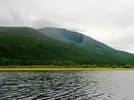 20 km (12 mi) to the south, across the Tsipikan River, rises the smaller Maly Khapton range, highest point 2,135 m (7,005 ft). It runs parallel to the Bolshoy Khapton at the southern limit of the Baunt Depression.[2]