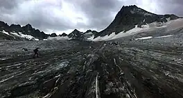 Mammoth Glacier is in the Bridger Wilderness of Bridger-Teton National Forest, in the U.S. state of Wyoming. The glacier is on the west side of the Continental Divide which separates it from Dinwoody Glacier to the east. Mammoth Glacier is the largest glacier on the west side of the Continental Divide of the Wind River Range and occupies a large, north facing cirque on the north slopes of Twin Peaks and just west of Mount Woodrow Wilson.[2] Mammoth Glacier is part of the largest grouping of glaciers in the American Rocky Mountains.