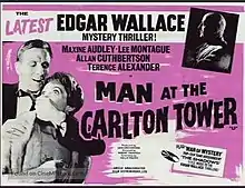 Man at the Carlton Tower is a 1961 British crime film directed by Robert Tronson and starring Maxine Audley, Lee Montague and Allan Cuthbertson.[1] Part of the long-running series of Edgar Wallace Mysteries films made at Merton Park Studios, it is based on the 1931 novel The Man at the Carlton.[2]