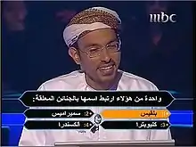 من سيربح 2 مليون (English translation: Who will win 2 million?, transliteration: Man sa yarbah 2 malyoon) was a Middle Eastern and North African game show based on the original British format of Who Wants to Be a Millionaire?. The show was hosted by George Kurdahi.[1] Top prize was SRls 2,000,000. This is the successor of the first season of Man sa yarbah al malyoon with SRls 1,000,000 as the top-prize. The first season of Man sa yarbah al malyoon was aired since Monday, September 14, 1998 after the tenth episode of British WWTBAM to help and prevent the hiatus situation of British WWTBAM.