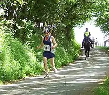 The Man versus Horse Marathon is an annual race over 22 miles (35 km), where runners compete against riders on horseback through a mix of road, trail and mountainous terrain. [1][2] The race, which is a shorter distance than an official marathon road race, takes place in the Welsh town of Llanwrtyd Wells every June. There are other Man versus Horse races — in Scotland based at Dores, near Loch Ness,[3] in Central North Island, New Zealand[4] and in Prescott, Arizona.[5][6]