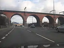 | 10.3 | 16.5 | 10[coord 10] | B5158 - Trafford Park, Urmston | |||